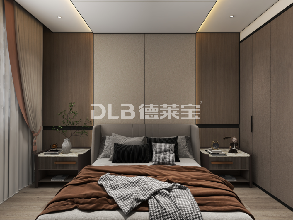 现代-卧室木饰面背景墙