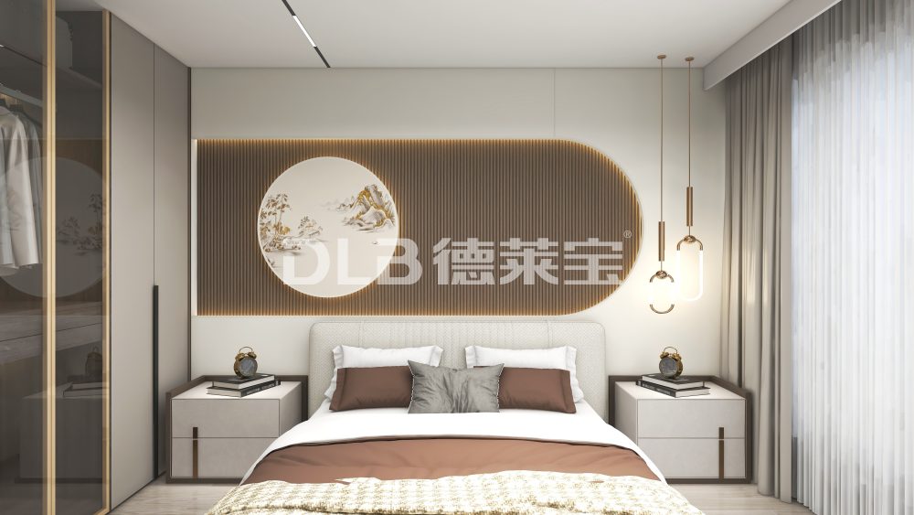 新中式-卧室木饰面背景墙