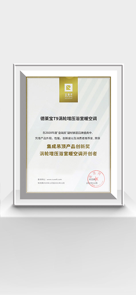 2020年度顶墙行业领军品牌/2020年度顶墙行业产品创新奖